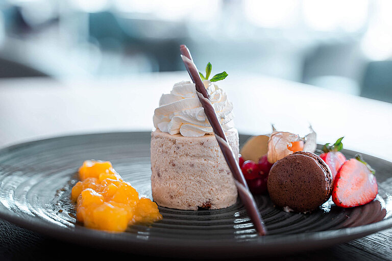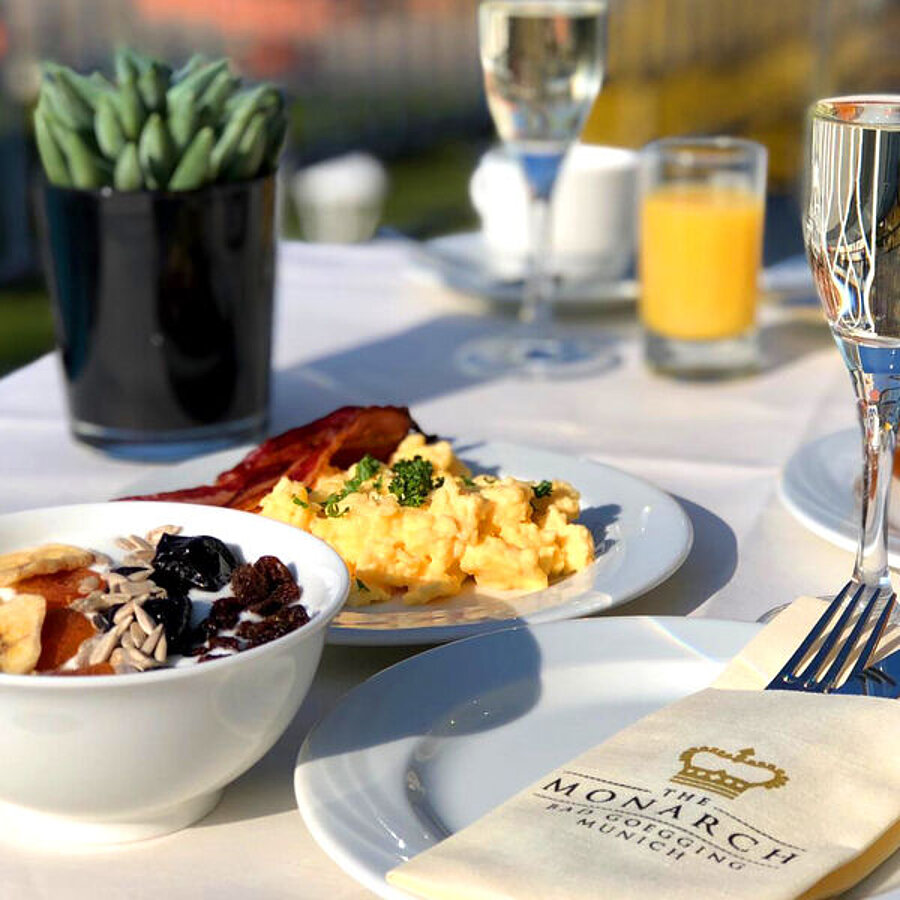 At The Monarch Hotel in Bad Gögging, guests can expect a diverse culinary selection. In addition to buffet options, the restaurants offer exclusive dishes and drinks. Snacks such as currywurst and sandwiches are served at lunchtime. In the afternoon, you can enjoy coffee, cake, and possibly Bad Gögging's best tortes, both sweet and savory, at The Monarch Coffee Shop. In summer, the beer garden on the sun terrace invites you to linger outdoors. In the evening, guests are pampered in the restaurant, and the bar offers a selection of snacks.